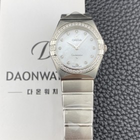 [오메가] 여성용 컨스틀레이션 맨해튼 131.15.28.60.55.001 다이아몬드 세팅 베젤 28mm 쿼츠 Cal.4061무브먼트 화이트 자개 다이얼 omg0222