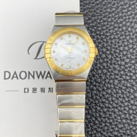 [오메가] 여성용 컨스틀레이션 맨해튼 131.20.28.60.55.002 옐우골드 28mm 쿼츠 Cal.4061무브먼트 화이트 자개 다이얼 omg0230