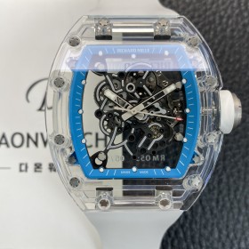 현재위치 : HOME [리차드밀레] 남성용 RM055 트랜스파랜트 50mm 미네랄 크리스탈 기계식 수동형 무브먼트 블루 스켈레톤 다이얼 ric0327 > 리차드 밀러