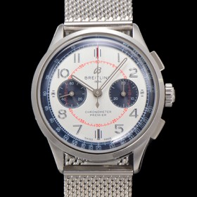[브라이틀링] 남성용 프리미에르 AB0018A71G1P1 크로노그래프 7750 타입 오토매틱 42mm 메쉬밴드 화이트 다이얼 bre6011 - Breitling Men's Premier Chronograph 7750 Type Automatic 42mm Mesh Band White Dial |