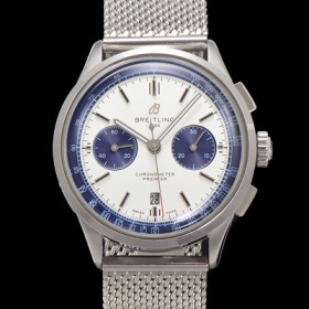 [브라이틀링] 남성용 프리미에르 크로노그래프 7750 타입 오토매틱 42mm 메쉬밴드 화이트 다이얼 bre6013 - Breitling Men's Premier Chronograph 7750 Type Automatic 42mm Mesh Band White Dial |