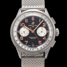 [브라이틀링] 남성용 프리미에르 크로노그래프 7750 타입 오토매틱 42mm 메쉬밴드 블랙 다이얼 bre6021 - Breitling Men's Premier Chronograph 7750 Type Automatic 42mm Mesh Band black Dial |