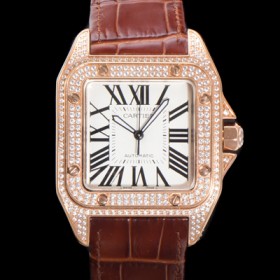 [까르띠에] 산토스 100 XL 오토매틱 ETA2824-2 타입 18k 로즈골드 남성용 51mm 가죽줄 화이트 다이얼 car69315 - Cartier Santos 100 XL Automatic ETA2824-2 Type 18k Rose Gold Men's 51mm Leather Strap White Dial |