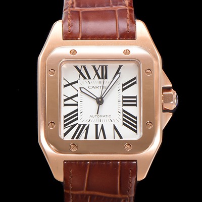 Cartier Santos 100 XL Automatic ETA2824-2 Type 18k Rose Gold Men's 51mm Leather Strap White Dial