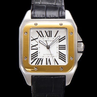 Cartier Santos 100 Automatic ETA2824-2 Type 18k Yellow Gold Bezel Men's 51mm Leather Strap White Dial