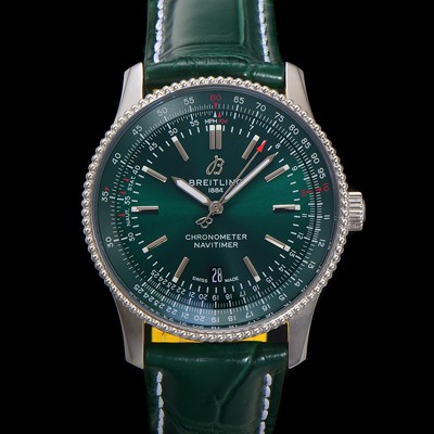 Breitling Men's Navitimer Chronograph Automatic Type 2824 41mm Leather Strap Green Dial