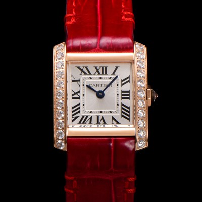 [Cartier] Women's Tank "Française Watch!!" Diamond Small Model Rose Gold Quartz Movement Alligator Leather White Dial
