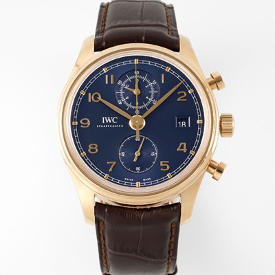 IWC Portuguese Kaliber Chronograph Classic 18k Rose Gold Blue Dial Automatic Movement