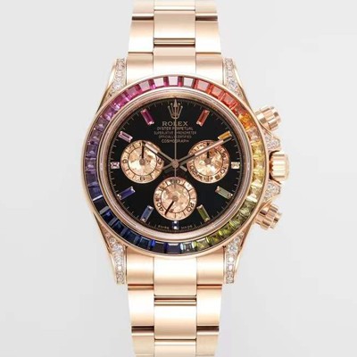 Rolex Men's Daytona Rainbow Chronograph 18k rose gold 40mm Automatic Cal.4130 Type Black Dial