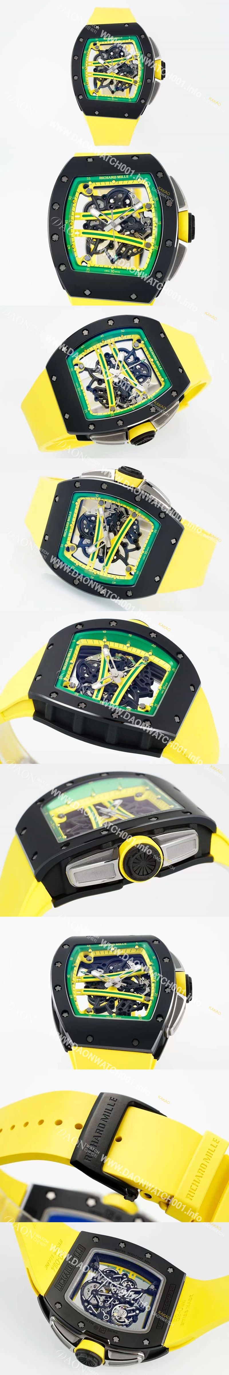 [리차드밀레] 남성용 리차드밀 RM61-01 세라믹 50mm 기계식 수동형 무브먼트 스켈레톤 다이얼 ric0322 - Richard Mille Men's Richard Mille Ceramic 50mm Mechanical Manual Movement Skeleton Dial