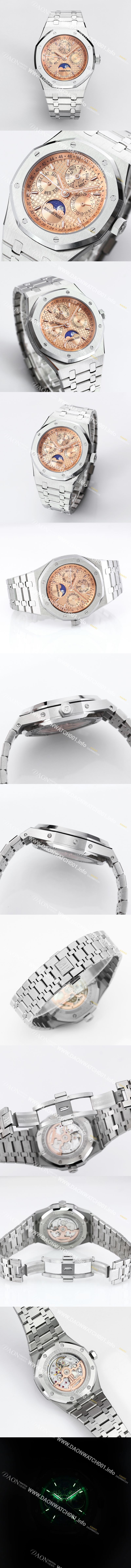 - 로즈골드 3D와플 다이얼,실버 스틱 인덱스 - 6시 방향 문페이즈 - 업그레이드된 야광기능(핸즈 및 인덱스)