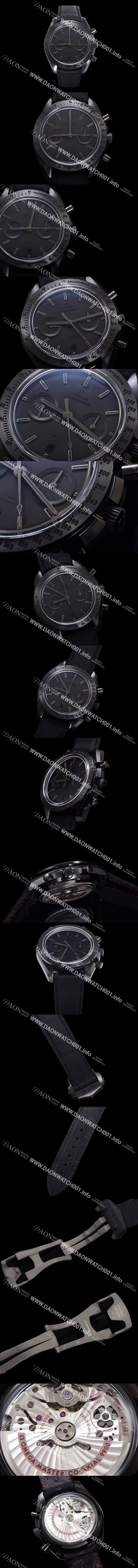 - 블랙 다이얼,수퍼 루미노바 코팅 - 크로노그래프 기능이 추가된 오메가 스피드마스터 문워치 - 6시방향 데이트창, 9시방향 영구초침, 3시방향 12시간계 정상작동 |