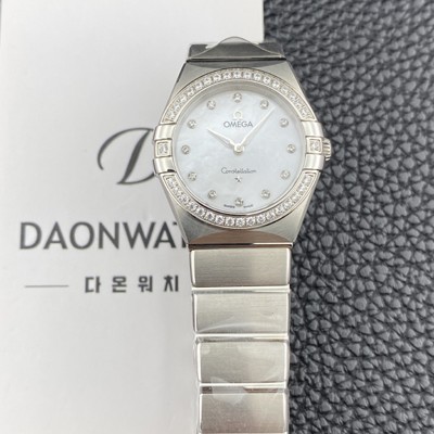 Omega Ladies Constellation Manhattan Diamond Set Bezel 28mm Quartz Movement White Mother of Pearl Dial