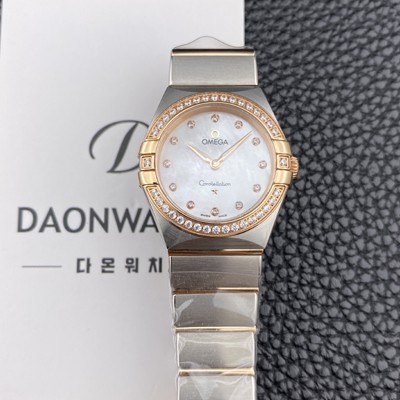 Omega Women's Constellation Manhattan Rose gold diamond-set bezel 28mm Quartz Cal. 4061 movement White mother-of-pearl dial