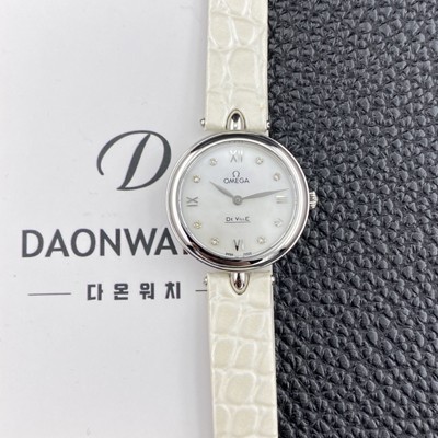 • [오메가] 여성용 드빌 424.18.27.60.52.001 프레스티지 듀드롭 27.4mm 다이아몬드 쿼츠 무브먼트 화이트 자개 다이얼 omg0238