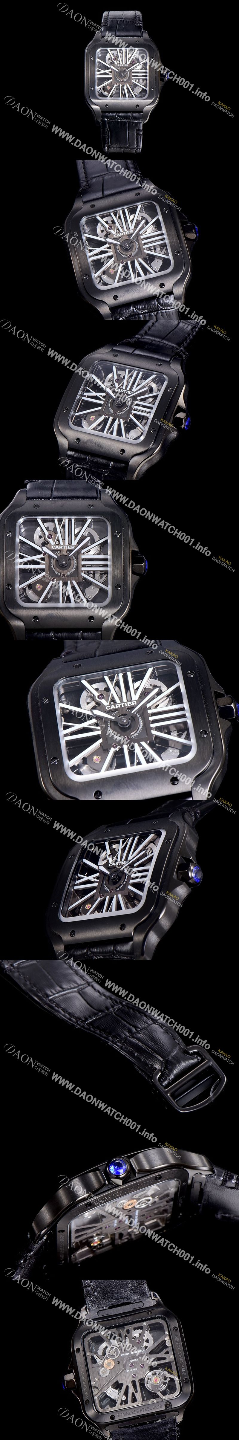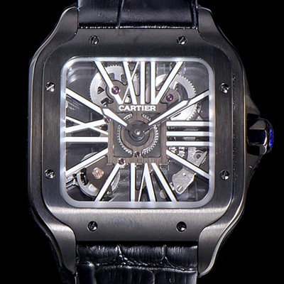Cartier De Santos Hand Winding Mens 39.8mm PVD Coated Gold Skeleton Dial