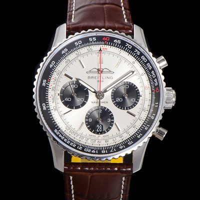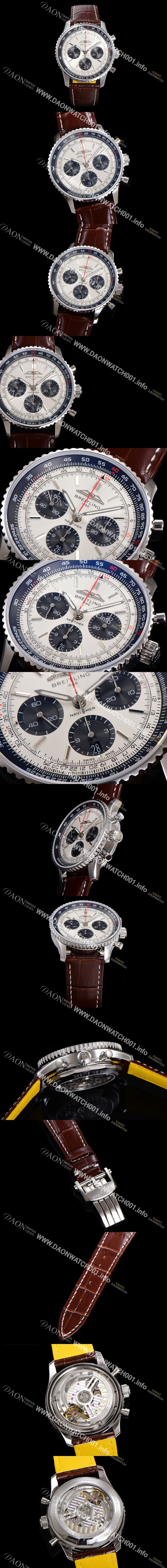 Breitling Men's Navitimer Chronograph ETA7750-2 Type Automatic 43mm Leather Strap Silver Dial