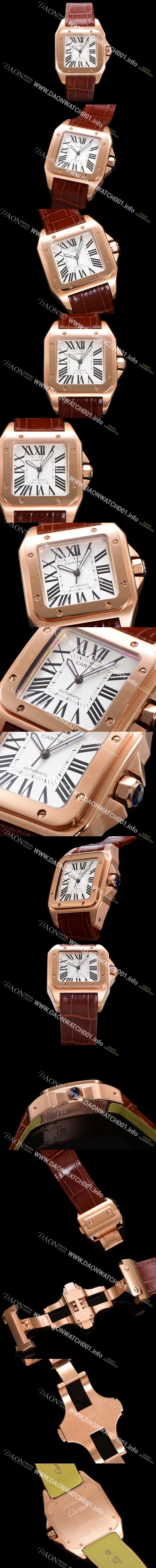 [까르띠에] 산토스 100 XL 오토매틱 ETA2824-2 타입 18k 로즈골드 남성용 51mm 가죽줄 화이트다이얼 car69313 - Cartier Santos 100 XL Automatic ETA2824-2 Type 18k Rose Gold Men's 51mm Leather Strap White Dial |