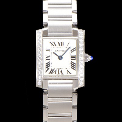 Cartier Women's Tank "Française Watch!!" Diamond S Model Silver Finish Grain Dial Swiss Quartz Movement
