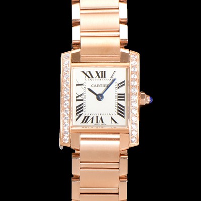 Cartier Women's Tank "Française Watch!!" Diamond S model, rose gold steel silver finish grain dial Swiss quartz movement