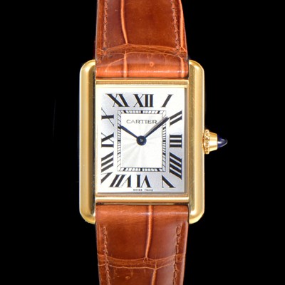 Cartier Women's New Tank Silver Dial 33.7mm Yellow Gold Crocodile Leather Quartz Movement