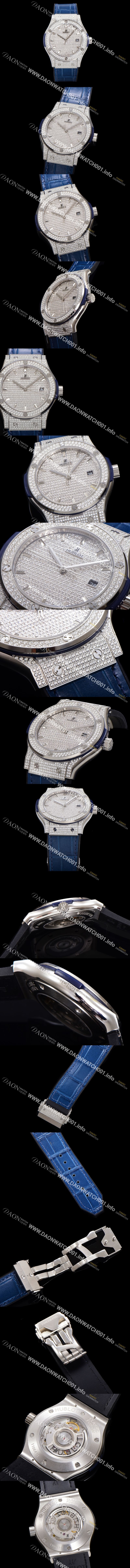 Hublet Men's Classic Fusion Diamond Setting Cubic/Gem Dial 42mm Automatic 2892 Type Leather/Urethane Mix Band
