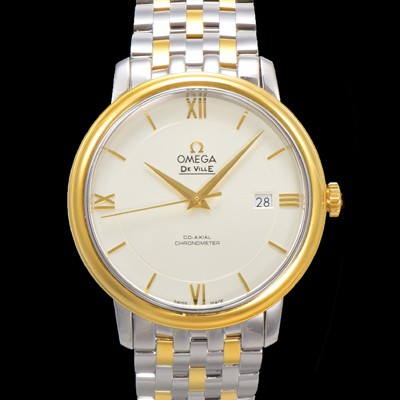 Omega Men's Deville Prestige Automatic Cal.8800 Type 39.5mm 18K yellow gold Metal Strap White Dial