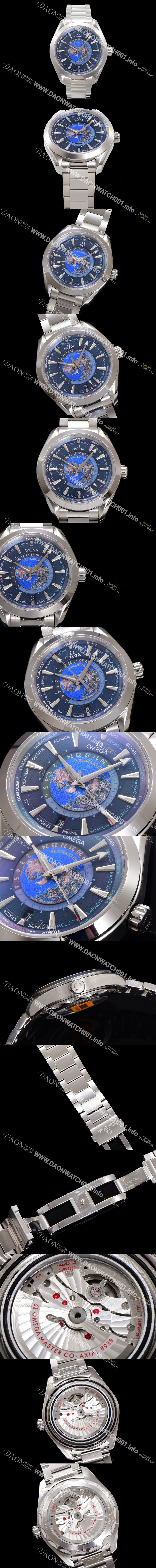 [오메가] 남성용 씨마스터 220.10.43.22.03.001 아쿠아테라 150M GMT 월드타이머 43미리 오토매틱 Cal. 8938 타입 메탈줄 블루 다이얼 omg20240 - Omega Men's Seamaster Aqua Terra 150M GMT Worldtimer 43mm Automatic Cal. 8938 Type Metal Strap Blue Dial |