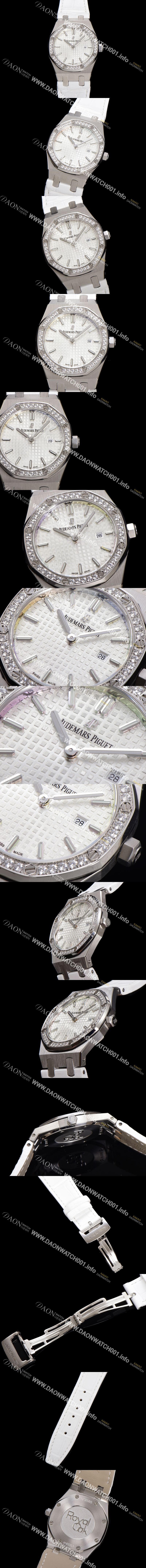 Audemars Piguet Women's Royal Oak Alligator Leather Strap 33mm Quartz Movement White Waffle Dial