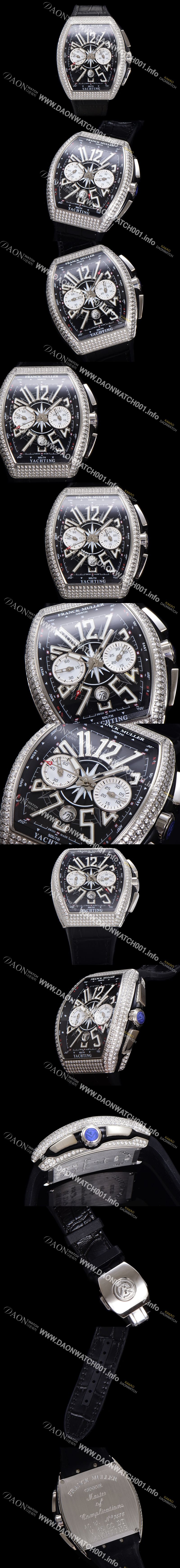Franck Muller Men's Vanguard Diamond Setting Automatic Chronograph Type 7750 44mm Leather Strap Black Dial