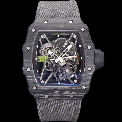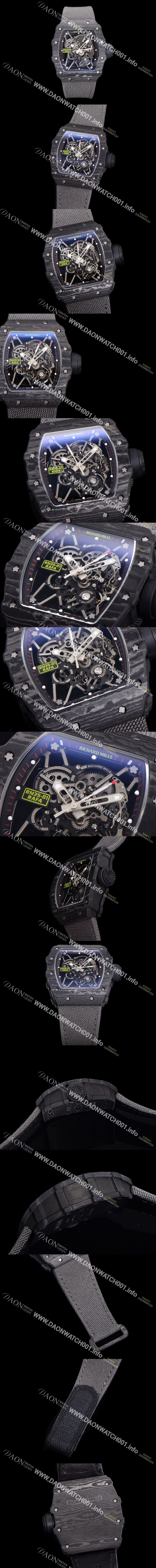 Richard Miller Men's RM035-01 Rapha Manual/Mechanical Movement 50mm Carbon Nato Leather Mix Bend Skeleton Dial