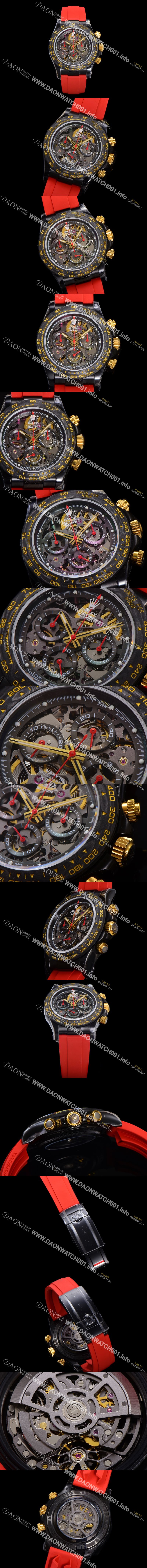 Rolex Men's Daytona Carbon bezel 40mm Chronograph Automatic Cal.4130 Movement Skeleton Dial