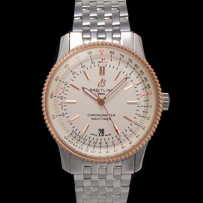 • [브라이틀링] 남성용 네비타이머 U17329F41G1U1 크로노그래프 18K 로즈골드 오토매틱 2824 타입 41mm 메탈줄 화이트 다이얼 bre6039