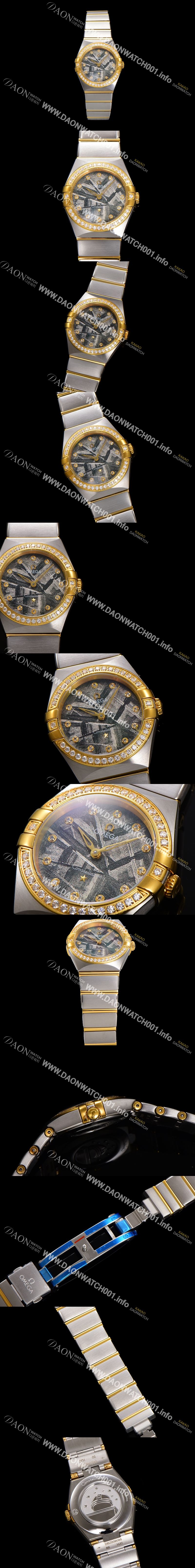 [오메가] 여성용 컨스틀레이션 131.25.28.60.99.002 옐로우골드 다이아몬드 세팅 베젤 28mm 쿼츠 무브먼트 메테오라이트 다이얼 omg0148 - Omega Ladies Constellation Yellow gold diamond set bezel 28mm quartz movement meteorite dial |