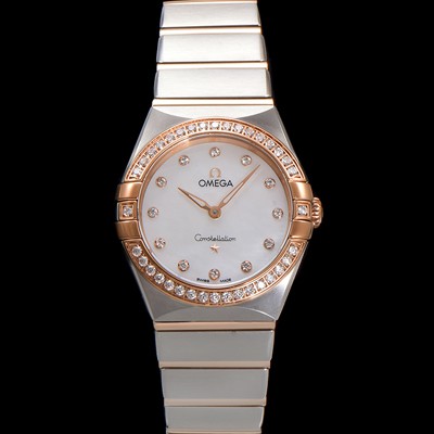 Omega Ladies Constellation Rose gold diamond set bezel 28mm quartz movement white mother-of-pearl dial