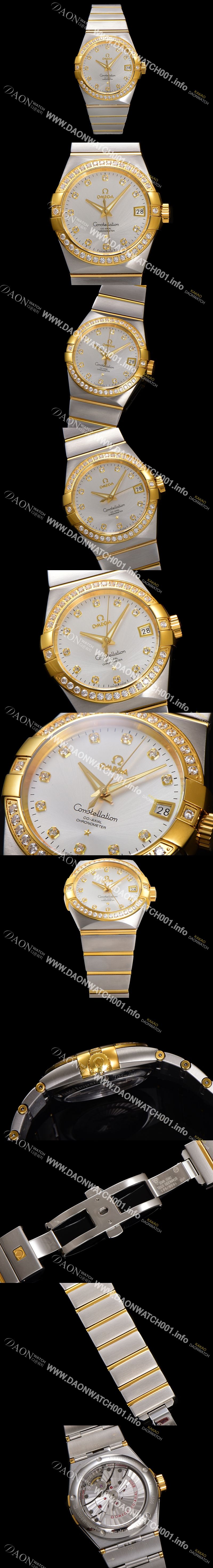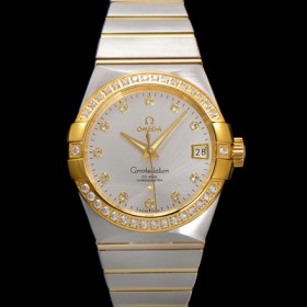 [오메가] 남성용 컨스틀레이션 123.25.38.21.52.002 18k 옐로우골드 다이아몬드 세팅 베젤 38mm 오토매틱 8500타입 실버 다이얼 omg0157 - Omega Men's Constellation 18k yellow gold diamond set bezel 38mm automatic 8500 type silver dial |
