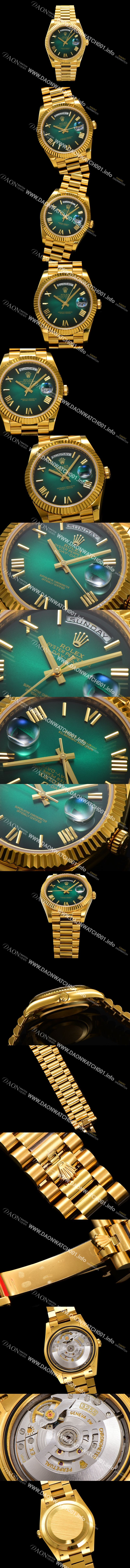 [로렉스] 남성용 New "VIP 타입 최종형" 데이데이트 m228238-0069 무게195g 18K 옐로우골드 40mm 오토매틱 Cal.3255 타입 그린 옴브레 다이얼 rol5424 - Rolex Men's New TOP Grade Qualit Day-Date Weight 195g 18K yellow gold 40mm Automatic Cal.3255 Type Green Ombré Dial