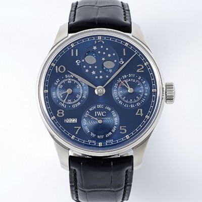 IWC Men's Portuguese Perpetual Calendar Double Moon 44mm Automatic Movement Blue Dial